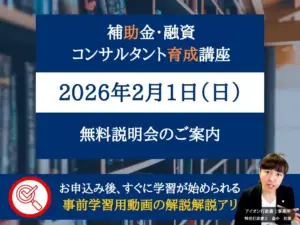 士業やコンサルとして中小・零細企業の社長様から要望の多い補助金支援業務について学びたい方はこちら。補助金申請のプロを目指すなら、当社の「補助金・融資コンサルタント育成講座」へ!