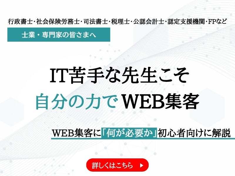 士業・専門家にとって、これからの集客や業務展開はWebを抜きには語れません。しかし、最初の一歩が踏み出しづらいのも事実です。
